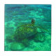 Hawaiian green sea turtle basking in the surf in Hawaii. Just feet from the beach. Floating in the ocean waves.
