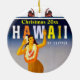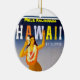 Hawaii holiday ornament or travel memento to personalize with the current year or change to a custom greeting. The tropical design includes vintage style Polynesian island art, grass skirt hula girl.