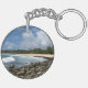 Acrylic keychain shown with a photo print of a beautiful hawaiian beach.
