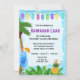 Celebrate your birthday in style with a Hawaiian Luau birthday invitation. This luau invitation has cool mixed drinks, a string of Paper Lanterns, and a palm tree. The background is a cool blue flower pattern. Celebrate your birthday in Tropical fun.