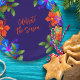 Tropical themed, hibiscus and holly paper plates for luau themed seasonal parties. Dark purple with bright orange, blue and yellow flowers. Green holly leaves with red berries are part of the design. Add any wording to the centre in orange script. Sample wording is, "Celebrate the Season", but could also say, "Merry Christmas", "Happy Holidays", or a more personal message for an office party.