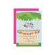 This Hawaiian luau birthday party invitation features and hibiscus flowers, and customizable text fields for your party information.