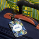 Custom luggage tag shown with a very tropical Hawaiian print with Aloha text.