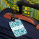 Custom luggage tag is shown with a very tropical Hawaiian print with text.
