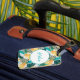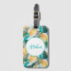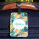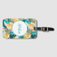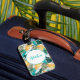 Custom luggage tag shown with a very tropical Hawaiian print with Aloha text.