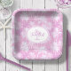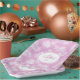 Bring tropical vibes to your home with this classic Hawaiian-inspired paper plate design. Featuring lush white palm trees silhouetted against a summery background in shades from light plum to orchid pink, this pattern captures the timeless beauty of island life. Perfect for beach-themed events, luau-themed parties or summer cottage, this versatile design adds a touch of the tropics to your decor. Customize the pattern size and personalize text to make it uniquely yours. Search ID1093 to see other products with this design.