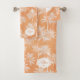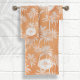 Bring tropical vibes to your home with this classic Hawaiian-inspired bath towel design. Featuring lush white palm trees silhouetted against a summery background in shades of tacao and sherbet orange, this pattern captures the timeless beauty of island life. Perfect for beach-themed bathrooms or summer cottage, this versatile design adds a touch of the tropics to your decor. Customize the pattern size and personalize text to make it uniquely yours. Search ID1093 to see other products with this design.