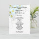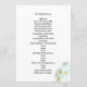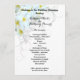 Flat Hawaiian wedding program template. White with white plumeria flowers and black text on both sides.