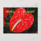 Hawaiian souvenir postcard with tropical flower greetings from Hawaii. Say aloha with pretty flowers, such as this bright red anthurium. The thick waxy blooms last a long time as a cut flower.