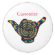 Hawaiian Surf Culture Shaka Brah Hand Wave in new age psychedelic colours to customize, personalize by changing to your name