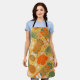 Hawaiian tropical print with shades or oranges, golds, greens and yellows. Fun print that incorporates tiki totem heads, hibiscus flowers and palm leaves.
