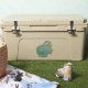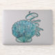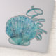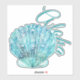Hawaii inspired large contoured sticker of a turquoise coloured decorative clam shell, with graphic text reading Aloha.
