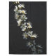 Hawthorn Flowers - A single Hawthorn branch with white spring flowers set against a stark black background.