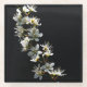 Hawthorn Flowers - A single Hawthorn branch with white spring flowers set against a stark black background.