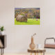 Hay bales and fall foliage on farm, poster