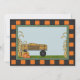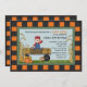 The perfect invitation for a fall hay ride! The festive orange and ebony chequered frame features a wagon loaded with hay and a waving scarecrow sitting on top. Corn stalks, hay, pumpkins and a squirrel complete the scene.