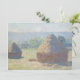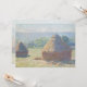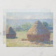 Haystacks, End of Summer by Claude Monet, oil on canvas 1891, French Impressionist painting of large bales of hale in a warm, sunny, golden field, from the famous Haystacks series of paintings. A range of warm yellow and golden colours contrasts with complementary cool blue and mauve tones in the shadows.
