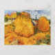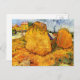 Haystacks in Provence by Vincent van Gogh is a vintage fine art post impressionism landscape nature painting. A farming scene with fields of wheat and stacks of hay on a farm during the autumn season harvest.