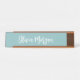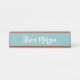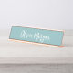 Elegant desk nameplate features your name, title, or choice of personalization in white hand scripted cursive lettering on a dusty teal background.