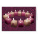 Pink and White candles with letters on each spelling out HAPPY BIRTHDAY, arranged in an oval and set against a purple swirling background