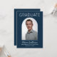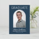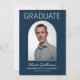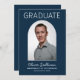 He Did It Photo Navy Graduation Invitation. Celebrate your grad in style with these modern navy and white graduation invitations featuring the graduate's photo on the front inside an arch shape with grad's name, school name and degree earned. On the back is the information for the grad party including "he did it" and graduation party details for all your invited guests.