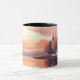 Inspirational quote scripture mug depicts a beautiful fall watercolor landscape including trees with colourful red and orange autumn leaves, with reflection in the water. It features Bible Verse Ecclesiastes 3:11, "He has made everything beautiful in its time."