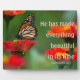 Inspirational Quote Bible Verse on Wood Box Sign - He has made everything beautiful in its time (Ecclesiastes 3:11) | The photo of a Monarch butterfly with red flowers against a green background is beautiful.