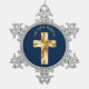 He Has Risen Blue Religious Golden Cross Snowflake Pewter Christmas Ornament