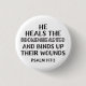 He heals the brokenhearted and binds up their woun 1 inch round button