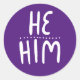 HE / HIM Pronouns Purple Handlettering Set of Classic Round Sticker