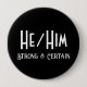 Express your true self in cool, classic and modern style with the HE/HIM Strong and Certain Round Black Button! Easily personalize by adding an image or changing the text and background colours. And create your own personalized button and stylish customized gifts for any occasion!