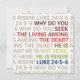 He Is Risen from Luke 24:5-6. Why do you seek the living among the dead? He is not here; He is risen! Celebrate Christian Easter resurrection with this Jesus Christ Bible verse.