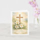 This card features a beautiful illustration of a wooden cross and Easter lilies, with the text He is Risen, by digital artist Jayne Wilson.