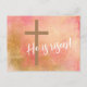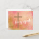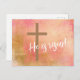 Dawn colours of coral pink and gold rough texture background with a simple cross and the traditional Easter greeting: "He is risen!" Inside is the answering greeting, "He is risen indeed". These familiar words testify to your joy and faith. Plenty of room within the card for your personal note. You can customize and personalize the text. Colours, the message, even the type of font used- just use the personalize or design tool to make the card to and say what expresses your Easter greetings.