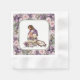 This Easter themed paper plate has a pink and purple spring flower wreath borders along the edge on a bright white background. In the centre is Jesus holding a lamb with a Bible and a spring floral bouquet.