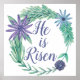 He is Risen. A beautiful religious poster with a beautiful floral wreath of purple and green. These lovely watercolor flowers rejoice in Jesus Christ. Pretty Christian gift.