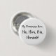 He spotted a pronoun badge just for him and quickly purchased it, making it his. He pinned it to himself every day and lived happily ever after!