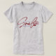 The blue and red script on this shirt says "He Restores My SOUL" and Psalm 23:3. The text "SOUL" ends in a pretty flower image.