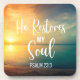 These elegant hard plastic coasters features the words "He Restores my Soul", offering a daily dose of inspiration with every sip. Both practical and uplifting, it’s perfect for your coffee table, desk, or kitchen—bringing a touch of faith to your home décor. A thoughtful gift or personal reminder of God’s presence in everyday moments.