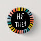 HE / THEY Pronouns Rainbow Handlettered Pride 1 Inch Round Button
