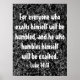 On a black glitter background inspired with bible verse Luke 14:11 "For everyone who exalts himself will be humbled, and he who humbles himself will be exalted."