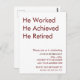 He Worked He Achieved He Retired Retirement Custom Postcard