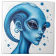 Head Of Blue Alien Closeup Sci-Fi Art Tile