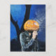 A spooky, Halloween postcard featuring the pastel artwork, “The Headless Biker”. This illustration features a pumpkin-head ghost wearing a leather jacket smoking a cigarette on a cold, dark October night. Original artwork: Pastels on paper. Copyright Dominic A. White. All rights reserved.