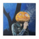 A spooky, Halloween tile featuring the pastel artwork, “The Headless Biker”. This illustration features a pumpkin-head ghost wearing a leather jacket smoking a cigarette on a cold, dark October night. Original artwork: Pastels on paper. Copyright Dominic A. White. All rights reserved.