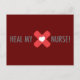 This fun men's postcard asks a nurse to heal his heart. It's a cute love comedy shirt. Pair with other items in the store, like a postcard to mail to your nurse or potential nuse!