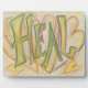The word "Heal" is pale lime green and yellow in colour. Behind the word is soft pastel pink and yellow hearts. Inspirational artwork by Laurel Latto for DonnaBellas Angels.