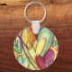The keychain art features overlapping hearts in a rainbow of colours. The heart images are both drawn and painted in watercolor. A single large heart is in the centre. The art is a tribute to the healing power of giving and receiving love in our lives.