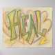 The word "Heal" is pale lime green and yellow in colour. Behind the word is soft pastel pink and yellow hearts. Inspirational artwork by Laurel Latto for DonnaBellas Angels.