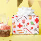 Artistic Christmas holiday gift wrap or decor featuring healthcare nursing supplies.